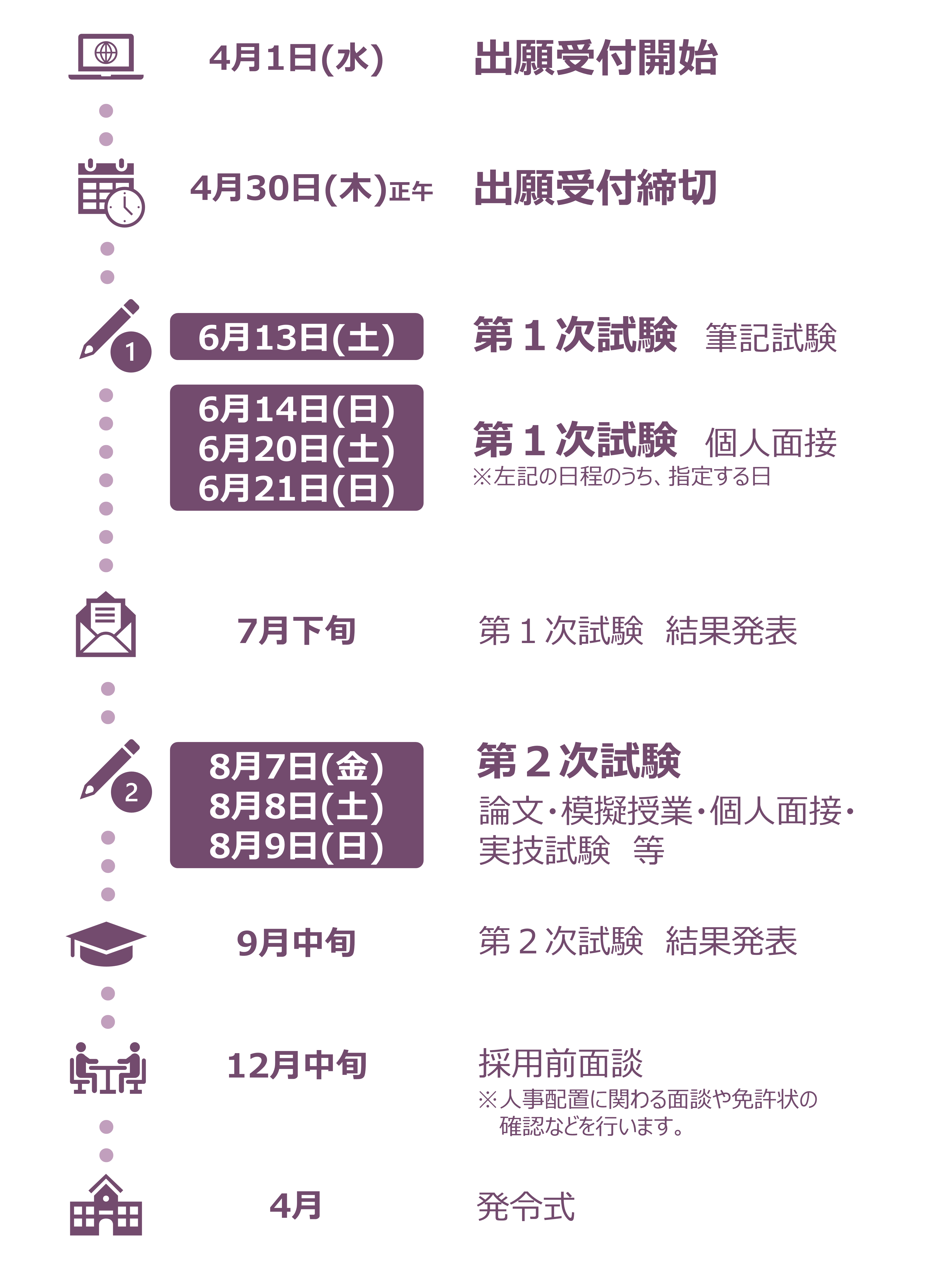 令和9年度(令和8年度実施)教員採用試験における主な変更点は以下のとおりです。